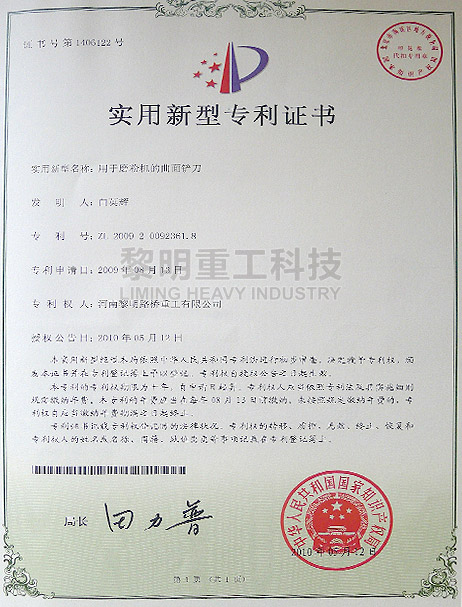 - 用于磨粉機的曲面鏟刀專利號:ZL 2009 2 0092361.8 >>查看證書