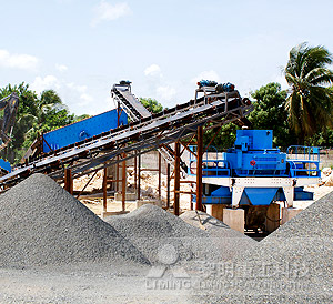 湖南大型破碎機(jī)生產(chǎn)線工作時,大塊石料經(jīng)料倉由振動給料機(jī)均勻地送進(jìn)顎式破碎機(jī)粗碎,粗碎后的石料由皮帶輸送機(jī)送到反擊式破碎機(jī)細(xì)碎,細(xì)碎后的石料再由皮帶輸送機(jī)送進(jìn)振動篩篩分,篩分出幾種不同規(guī)格的石子,滿足粒度要求的石子由成品皮帶輸送機(jī)送往成品料堆;不滿足粒度要求的石子由皮帶輸送機(jī)返料送到反擊式破碎機(jī)再次破碎,形成閉路多次循環(huán)。