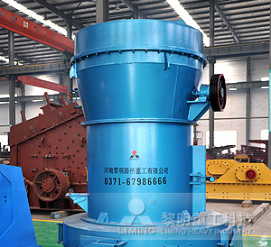 大塊狀物料經(jīng)顎式破碎機破碎到所需要粒度后,由提升機將物料送至儲料斗,再經(jīng)振動給料機均勻定量連續(xù)地送入主機磨室內(nèi)進行研磨。粉磨后的粉子被風(fēng)機氣流帶走,經(jīng)分析機分級,符合細度的粉子隨氣流經(jīng)管道進入大旋風(fēng)收集器內(nèi),進行分離收集,再經(jīng)粉管排出成品粉子。