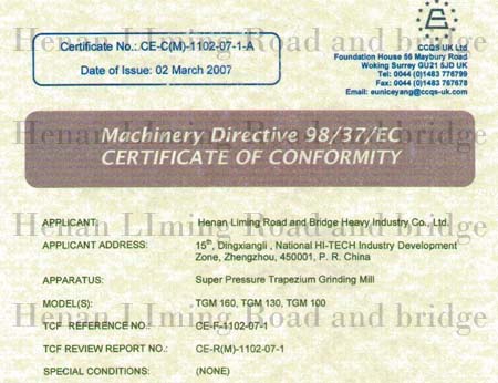 [CE認(rèn)證]熱烈祝賀公司梯形磨高壓磨通過歐盟CE認(rèn)證