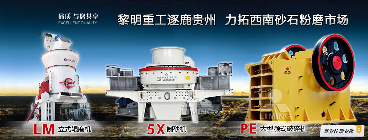 貴州省許多地區(qū)的制砂生產(chǎn)線設(shè)備采用的是河南黎明重工科技股份有限公司生產(chǎn)并為其專門配置的,主要用來破碎石灰?guī)r,用于附近高速公路 和高速鐵路建設(shè)用砂石骨料的供應(yīng),該制砂生產(chǎn)線主要由振動(dòng)給料機(jī)、顎式破碎機(jī)、反擊式破碎機(jī)、制砂機(jī)、三臺(tái)圓振動(dòng)篩、兩臺(tái)脈沖除塵器 、多條皮帶輸送機(jī),以及集中電柜組成。利用顎式破碎機(jī)、反擊式破碎機(jī)進(jìn)行石料的粗破和中破,而采用集破碎整形為一體的5X制砂機(jī)進(jìn)行砂 石的最終粒形整理,進(jìn)而實(shí)現(xiàn)高質(zhì)量多級(jí)別的砂石料生產(chǎn)要求。
