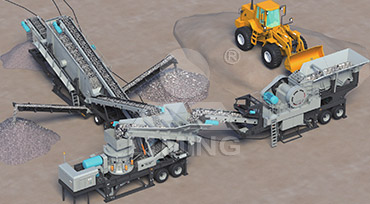 移動生產(chǎn)線通常以外接電力電源為動力來源,原料由GF系列振動給料機均勻地送到C6X系列顎式破碎機或者CI5X系列反擊式破碎機進行粗碎作業(yè),粗碎后的物料由皮帶輸送機送入到圓錐破碎機或者反擊式破碎機進行進一步破碎,細碎后的物料被輸送到S5X系列振動篩進行篩分,達到成品粒度要求的物料被由成品輸送帶輸出即為成品;未達到成品粒度要求的物料從振動篩返回制砂機或者圓錐破重新加工,形成閉路多次循環(huán)。成品粒度可按用戶的需求進行組合和分級。