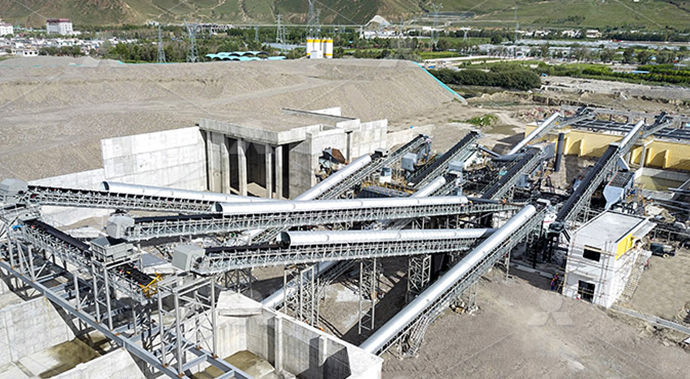 大塊河卵石經(jīng)料倉由振動給料機均勻喂料,輸送到顎式破碎機進行粗碎,粗碎后的河卵石經(jīng)振動篩篩分后,由皮帶輸送機輸送至反擊式破碎機或圓錐破碎機進行中細碎。