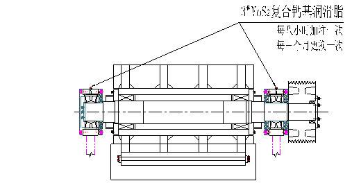 加入軸承座內(nèi)的潤滑脂應(yīng)為容積的50%-70%,每3-6個月更換一次。在換潤滑脂時應(yīng)用潔凈的汽油或煤油仔細清洗滾柱軸承的滾道等部位,清洗時應(yīng)打開軸承座下的放油孔。