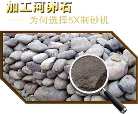 目前河卵石制砂合理的配置是粗碎用顎破,中碎用圓錐破(小產(chǎn)量可用細顎破),制砂用離心沖擊式破碎機(5X制砂機)的三級破碎。