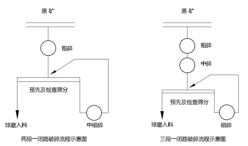 在具體破碎過程中,可以根據(jù)客戶對破碎比的不同要求,進(jìn)行相應(yīng)的破碎作業(yè)。根據(jù)不同的礦石性質(zhì)和使用破碎機(jī)的性能可以將總破碎比分成兩段或三段來實現(xiàn)。