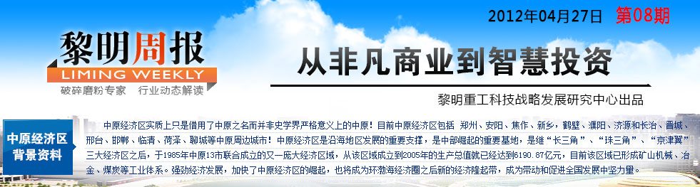 【導(dǎo)讀摘要】中原經(jīng)濟(jì)區(qū)地處中國(guó)中心地帶,全國(guó)主體功能區(qū)明確的開(kāi)發(fā)區(qū)域,其范圍涵蓋河南全省、延及周邊地區(qū)的經(jīng)濟(jì)區(qū)域,地理位置重要,市場(chǎng)潛力巨大,文化底蘊(yùn)深厚,在全國(guó)改革發(fā)展大局中具有重要戰(zhàn)略地位。去年十一國(guó)慶前夕,國(guó)務(wù)院正式出臺(tái)《國(guó)務(wù)院關(guān)于支持河南省加快建設(shè)中原經(jīng)濟(jì)區(qū)的指導(dǎo)意見(jiàn)》,建設(shè)中原經(jīng)濟(jì)區(qū)正式上升為國(guó)家戰(zhàn)略。
