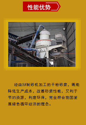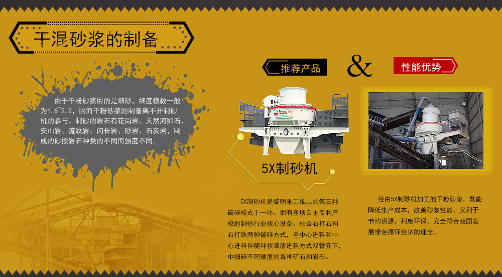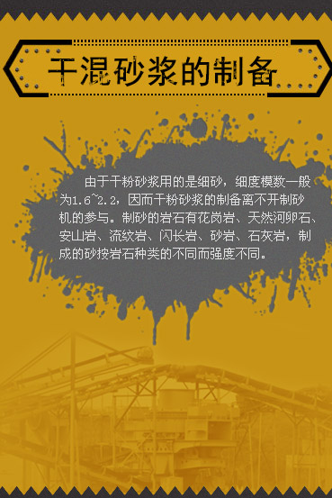 由于干粉砂漿用的是細(xì)砂,細(xì)度模數(shù)一般為1.6~2.2,因而干粉砂漿的制備離不開(kāi)制砂機(jī)的參與。制砂的巖石有花崗巖、天然河卵石、安山巖、流紋巖、閃長(zhǎng)巖、砂巖、石灰?guī)r,制成的砂按巖石種類(lèi)的不同而強(qiáng)度不同。