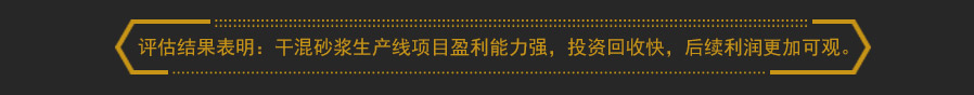 以新建一座年產(chǎn)15萬(wàn)噸的干混砂漿生產(chǎn)線為例,總資金700萬(wàn)元,流動(dòng)資金200萬(wàn)元。