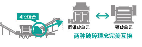給料單元互換系統(tǒng)和破碎單元互換系統(tǒng),只需再投資單機設(shè)備成本,短時間內(nèi),礦區(qū)現(xiàn)場即可在同一車身上實現(xiàn)不同型號給料單元互換系統(tǒng),反擊破與顎破的互換系統(tǒng),整機各系統(tǒng)之間的準確匹配,適應(yīng)場合更廣泛,破碎功能更優(yōu)良,客戶的消費品得到增值。